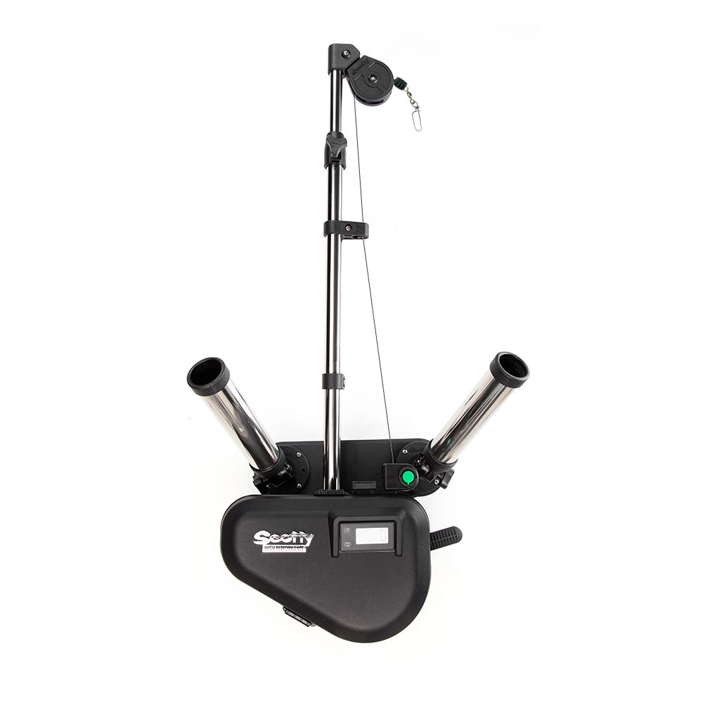 Профессиональный электрический даунриггер Scotty High Performance для ловли троллингом на глубинах до 80 м, с электронным счётчиком заглубления груза, показания которого легко читаются, и новым стальным поворотным "стаканом" для удилища. Даунриггер легко поднимет груз массой 6 кг со скоростью 90 м/мин. а 9 кг со скоростью 80 м/мин. Рекомендуется использовать стальной трос длинной до 90 метров.