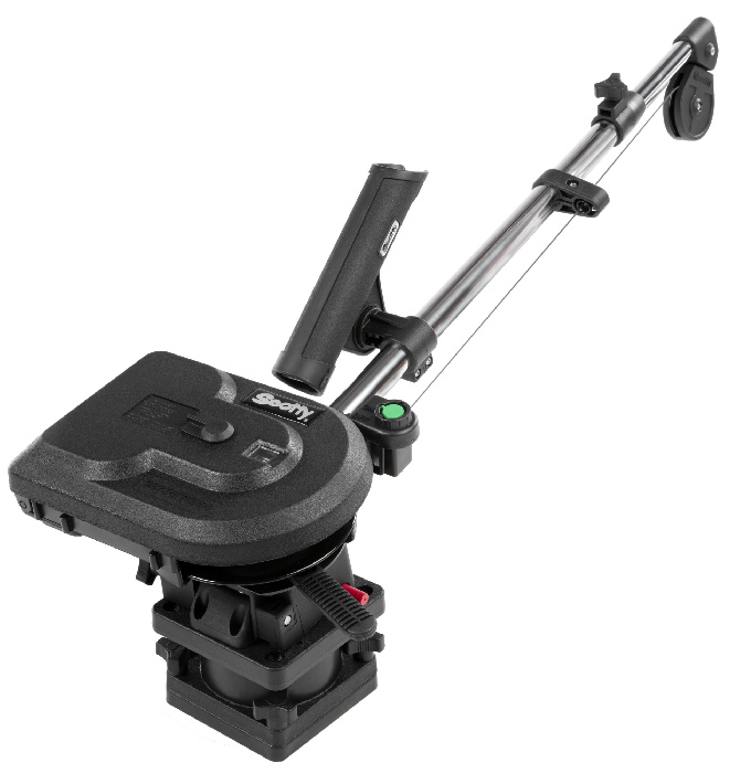 Компактный электрический даунриггер Scotty Depthpower.для рыбалки троллингом на глубинах до 70 м, оснащен механическим счетчиком оборотов бобины.