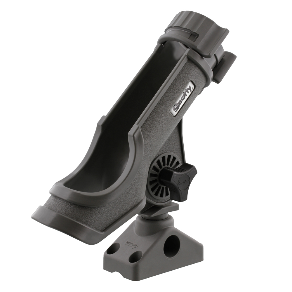 В комплект держателя для спиннинга Scotty входит универсальное крепление 0241, позволяющее установить держатель на любую жёсткую вертикальную, наклонную или горизонтальную поверхность. За счёт системы пошаговой регулировки на 360 градусов по горизонтали и на 180 градусов по вертикали Вы сможете расположить спиннинг на судне в нужном направлении и под оптимальным углом.