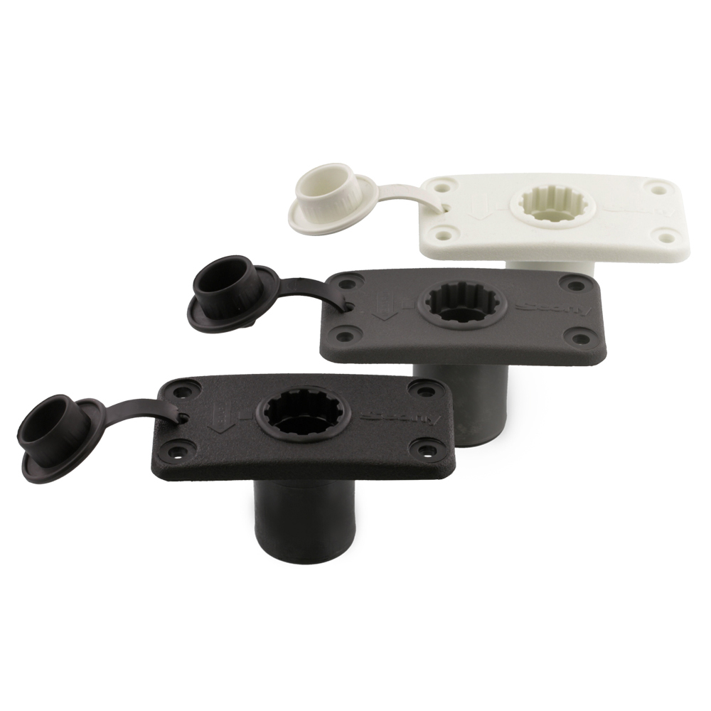 Крепление держателя имеет герметичное основание. Может устанавливаться на плоский борт лодок, катеров или каяков.