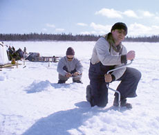 В месте ловли лед преобладал мокрый, и бурится он немного тяжелее, чем сухой.