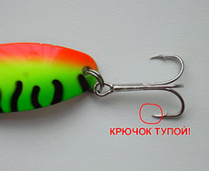 Троллинговые блёсны оснащены одинарными крючками размера около 5/0. Непривычно – блесна с одинарником… может, сразу поменять на тройник?