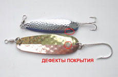 Я считаю, что для блесны ценой 5-8 долларов это недопустимо. Может, погрешности транспортировки? Это уже хуже, чем тупые крючки. Поцарапал ногтем – покрытие, напоминающее фольгу, слезает дальше. Посмотрим, как будут выглядеть эти блёсны после нескольких атак хищника.