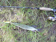 Провожу лодку галсами и на глубине около 3 м, наконец, слегка цепляю дно. Практически в этот же момент происходит поклёвка. Вываживаю щуку, поднимаю её на поверхность воды, на вид – килограмма полтора. Щука делает «свечку» и сходит. Зря я всё-таки не поменял одинарный крючок на тройник…