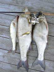 Второй тест – троллинг на Дону в районе Константиновска, 3.06.2006. Уровень воды ещё высокий и место локализации хищника найти нелегко. Проверка прошлогодних «рабочих» точек принесла одного судачка грамм на 800 и пару таких же щурят. Рыба поймана на воблеры.
